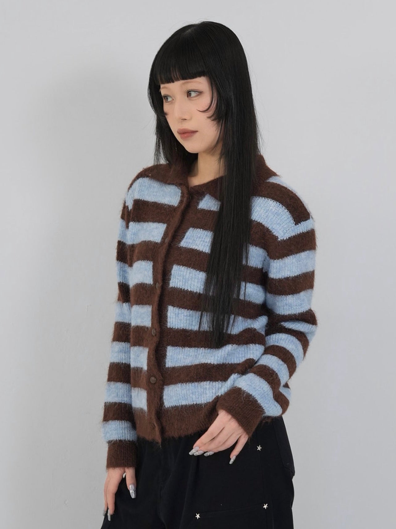 border color knit cardigan