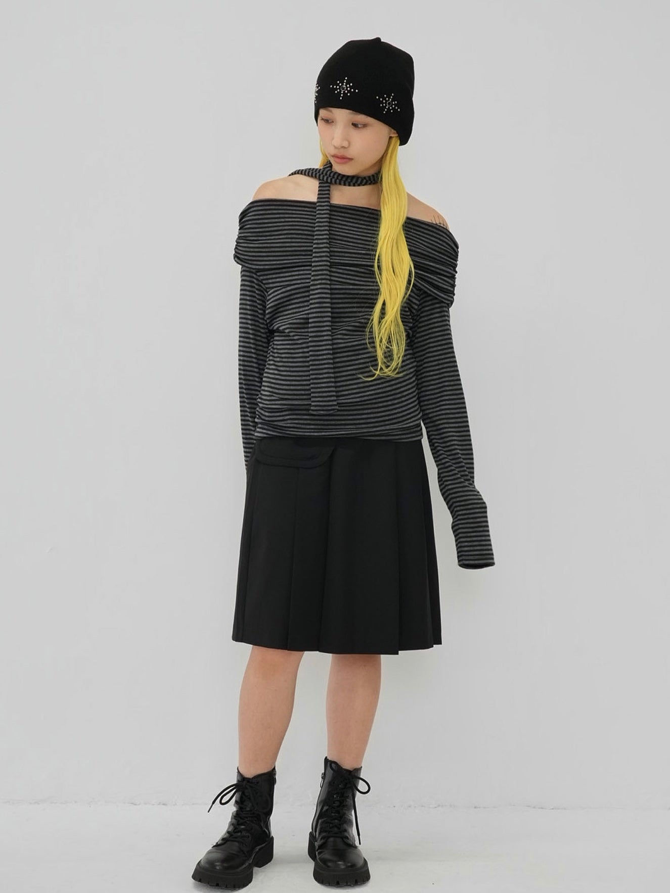 伸縮性のあるリブ素材で、快適な着心地も魅力。