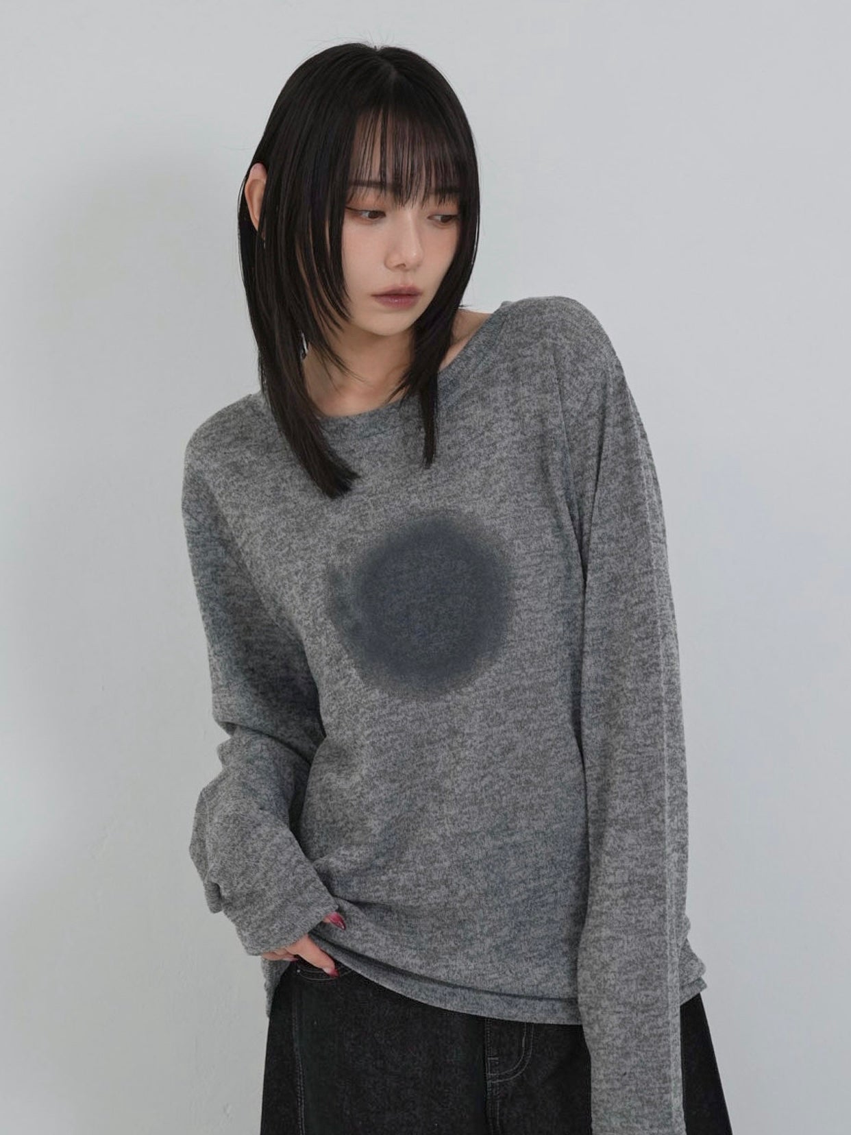 フロントのぼかしデザインが印象的なロングスリーブトップス。