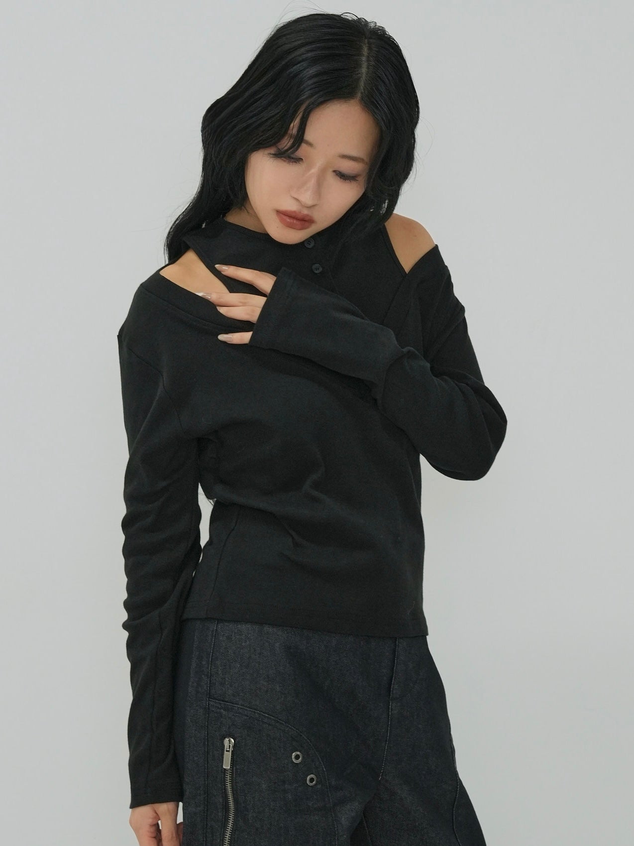 ダブルレイヤーデザインが目を惹くオフショルダートップス。