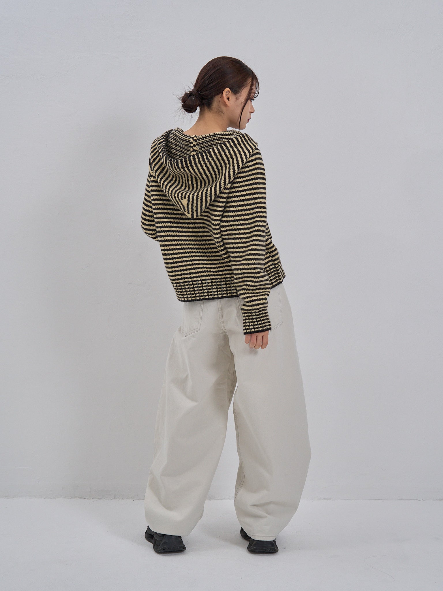 シンプルながらも存在感のあるボーダー柄が魅力のフーディニット。