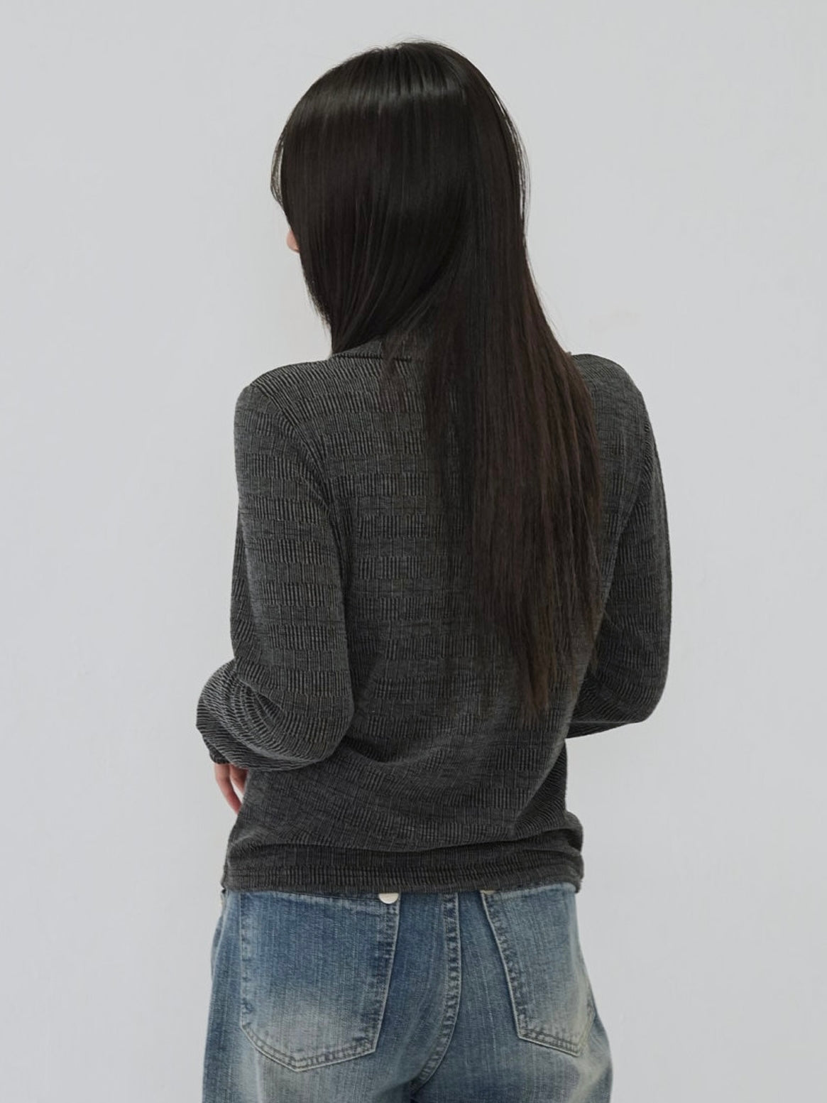 伸縮性のあるリブ素材で、快適な着心地も魅力。