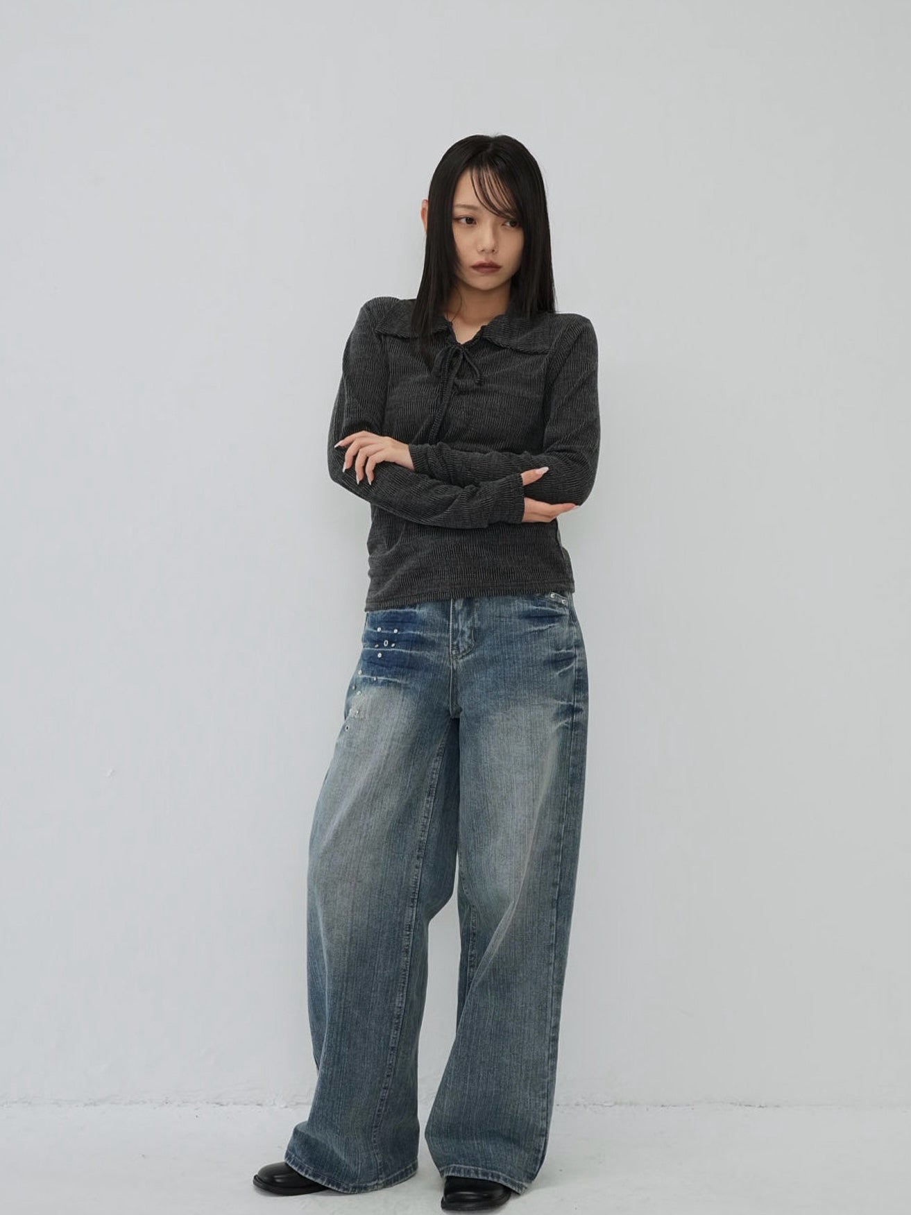 首元のアクセントが個性をプラス。