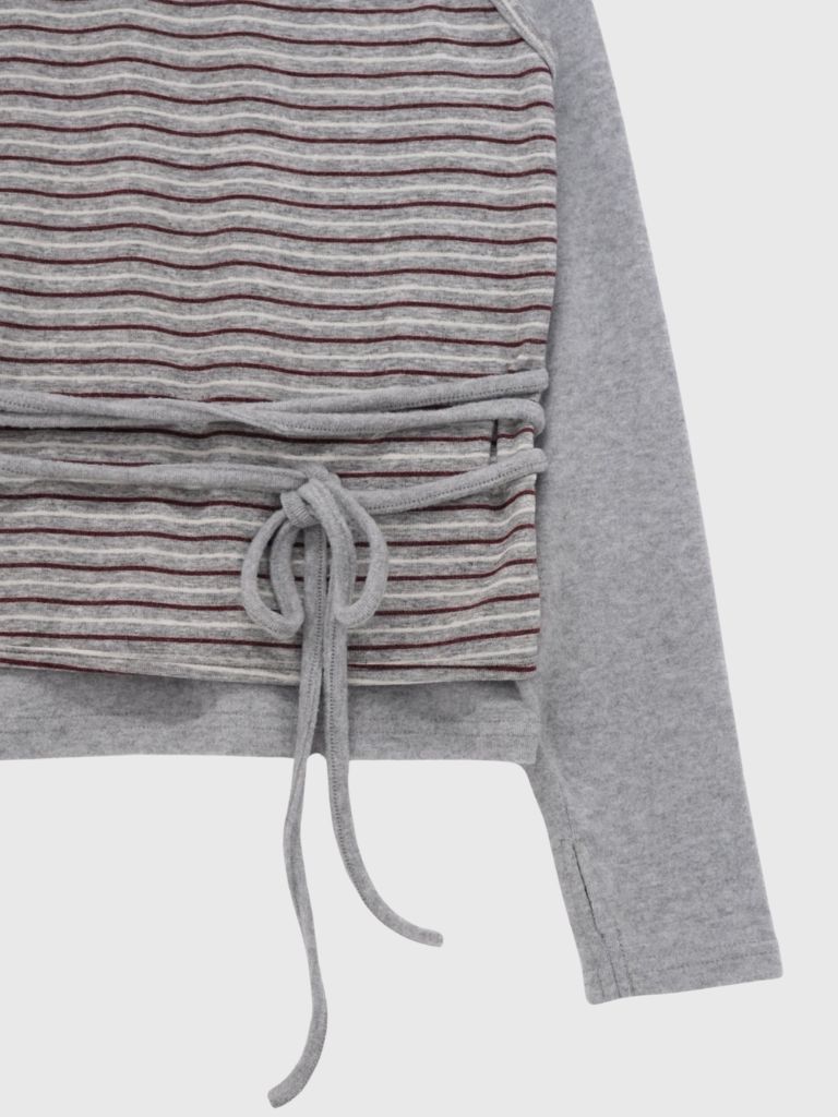 レイヤード風のデザインとウエストのリボンディテールが魅力の一枚。