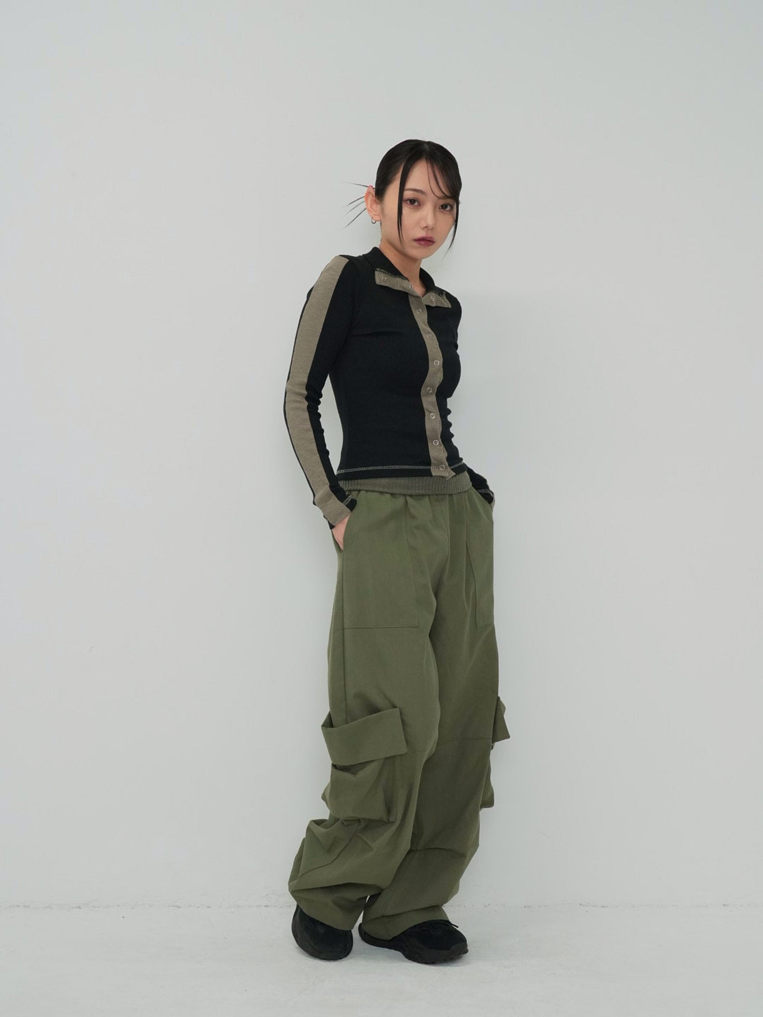 フロントのボタンラインと袖のライン配色がアクセントとなり、