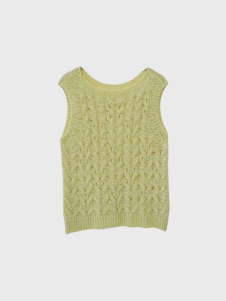 繊細な透かし編みデザインが魅力のノースリーブニットトップス。