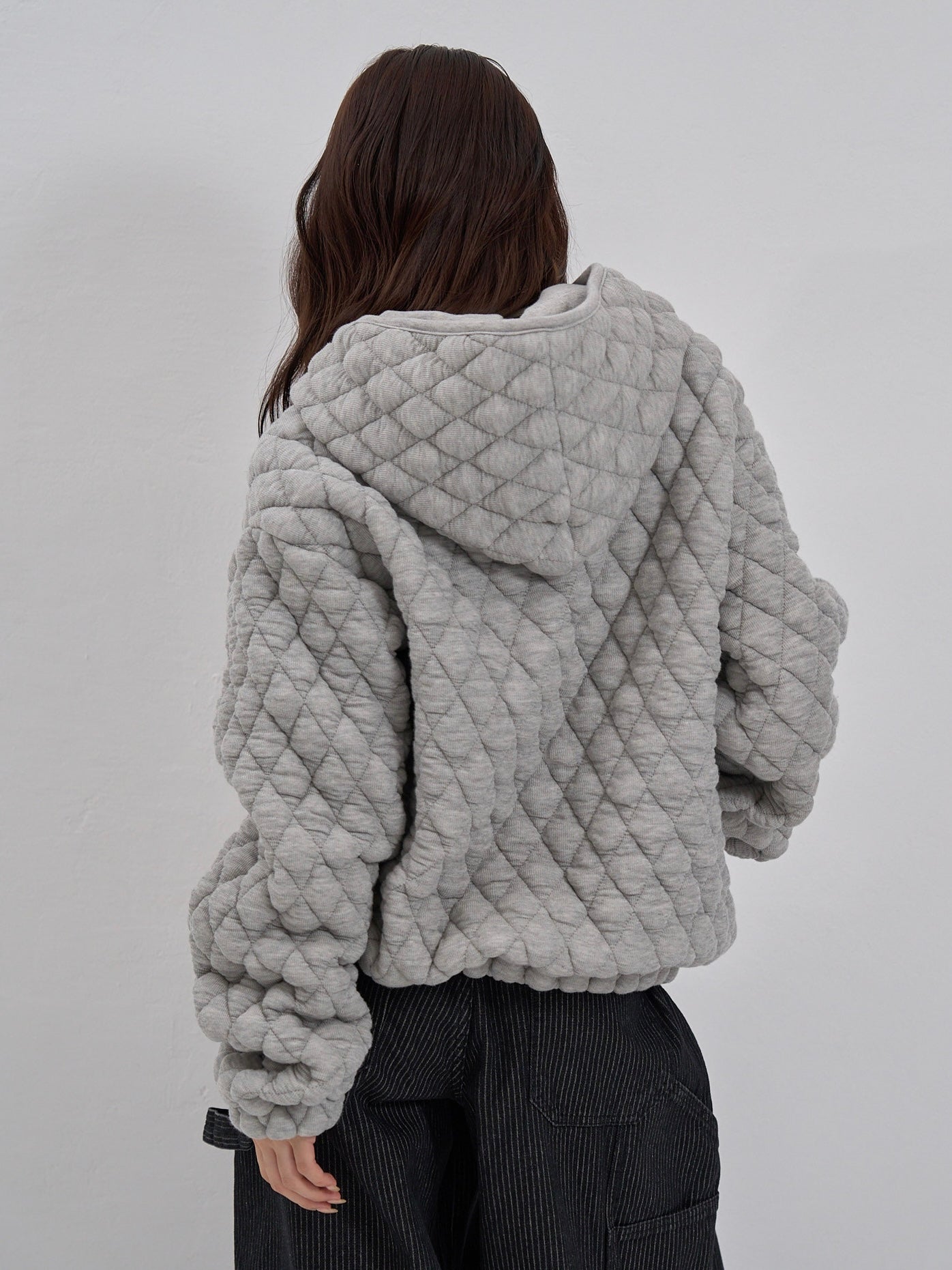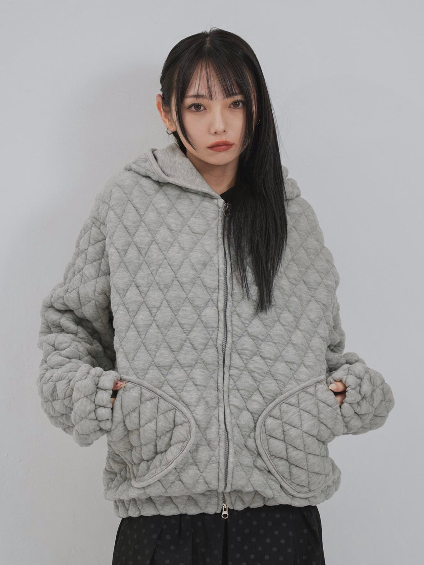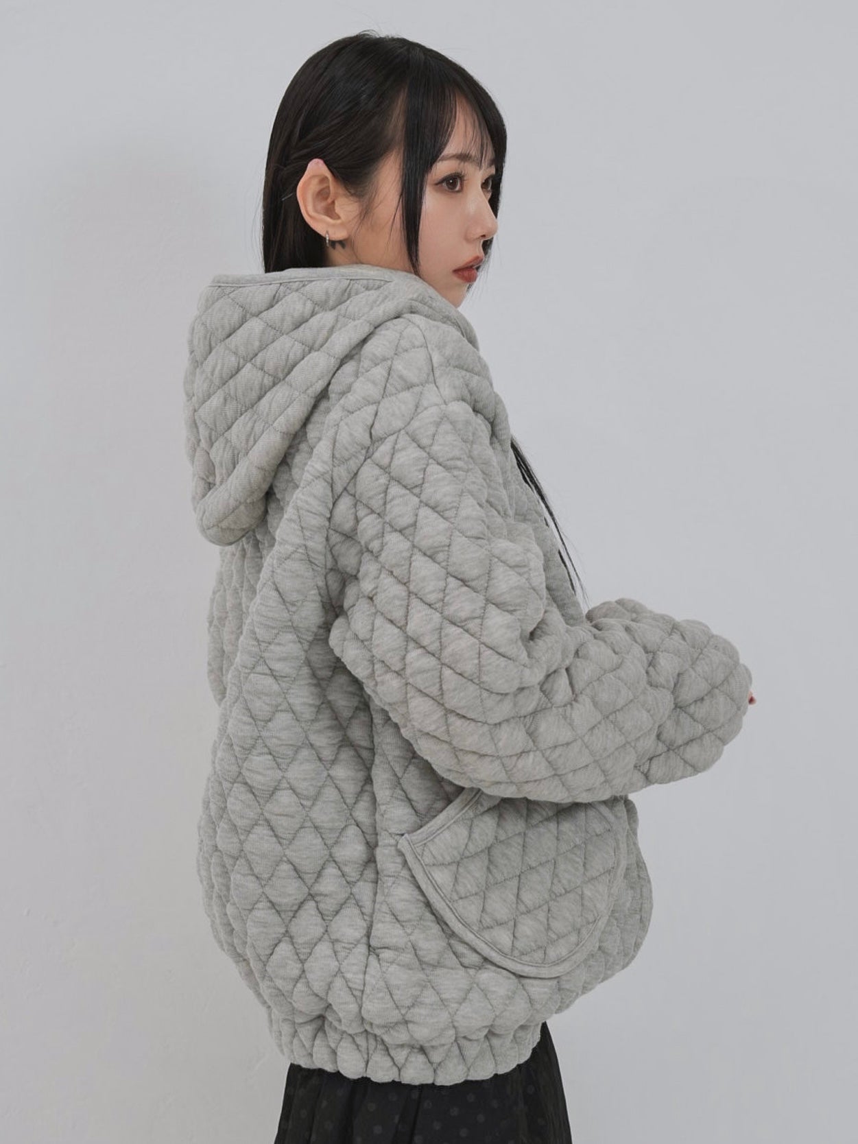 ダイヤ柄のステッチとラウンドポケットが柔らかい雰囲気を演出し、