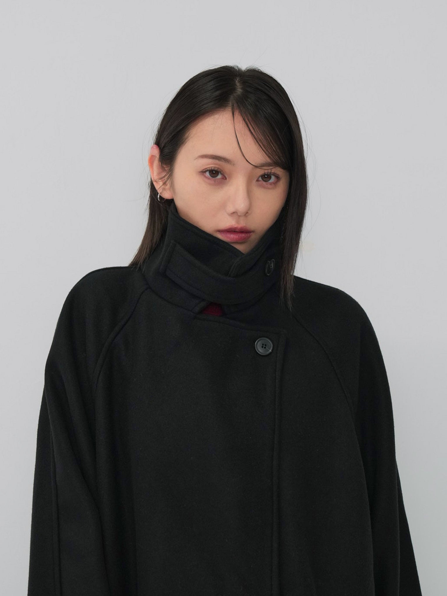 クラシックとモダンを兼ね備えた《standcollar wool coat》。