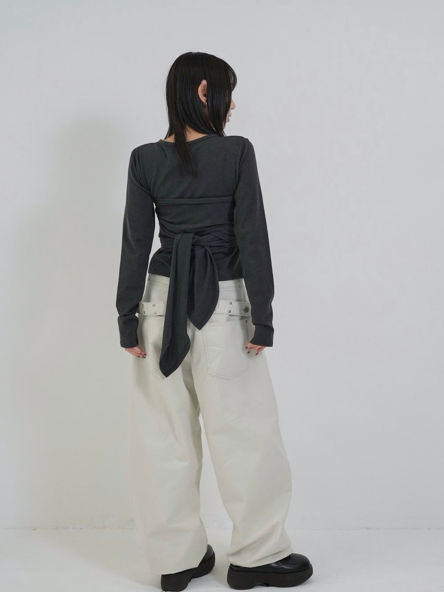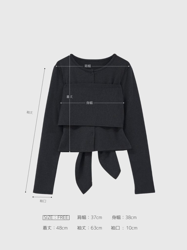 ビスチェをレイヤードしたようなデザインが魅力のタイビスチェカーディガン。