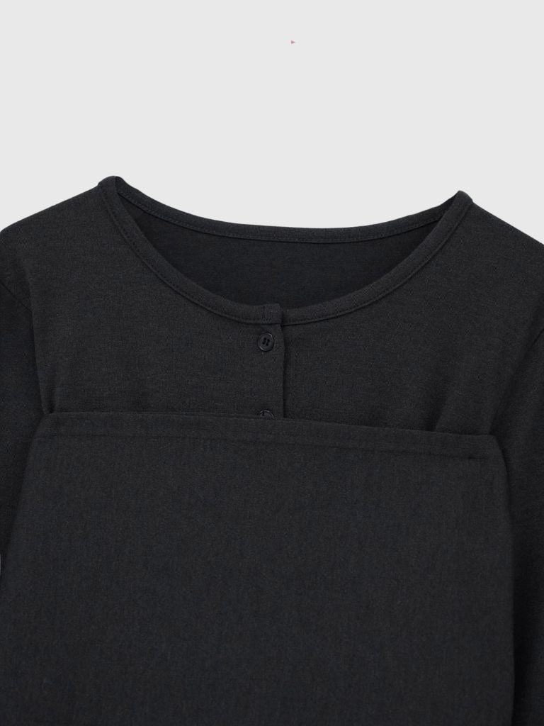 コンパクトな丈感とシンプルなラウンドネックがバランス良く、