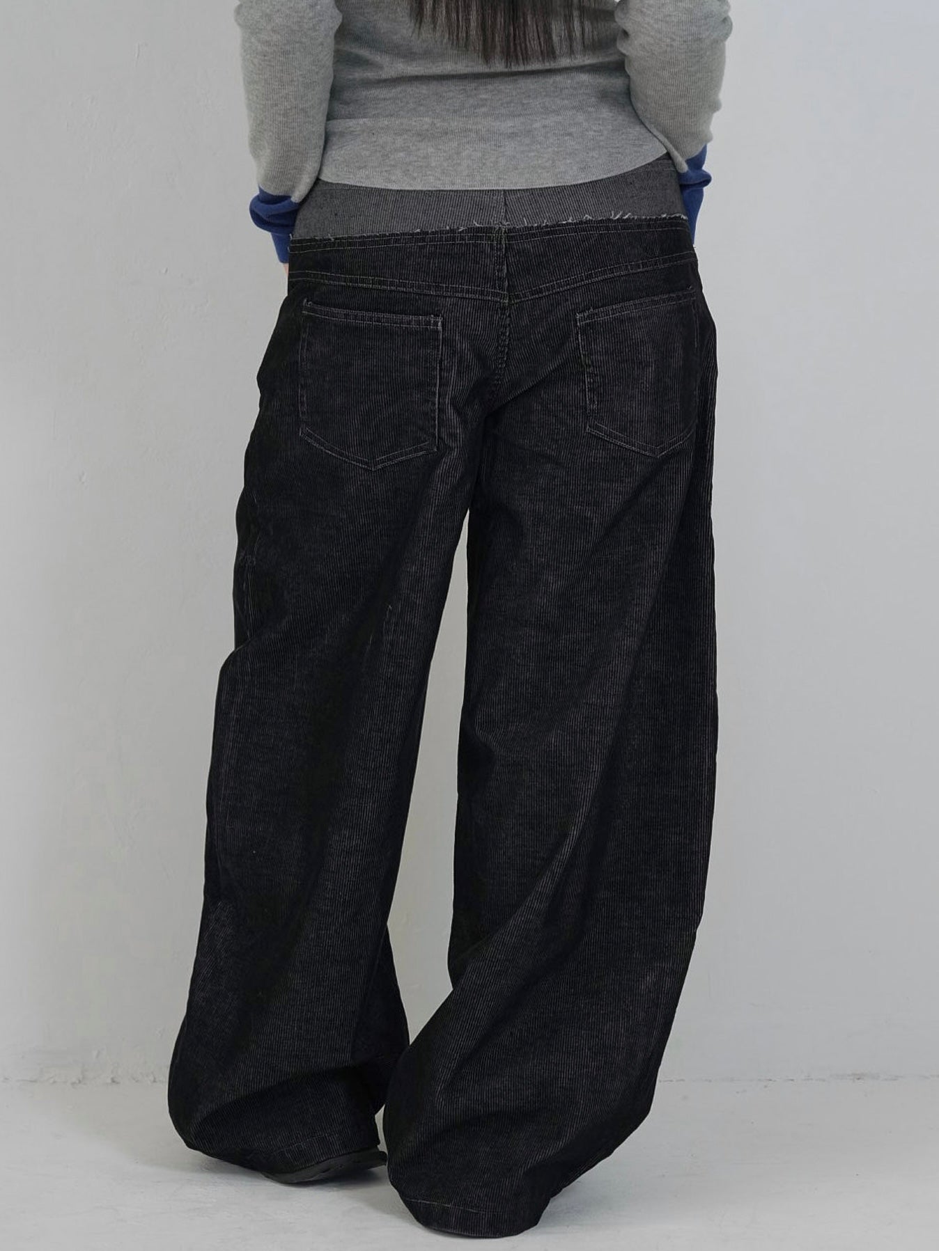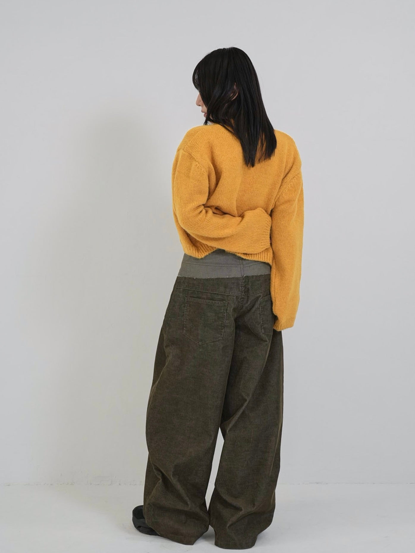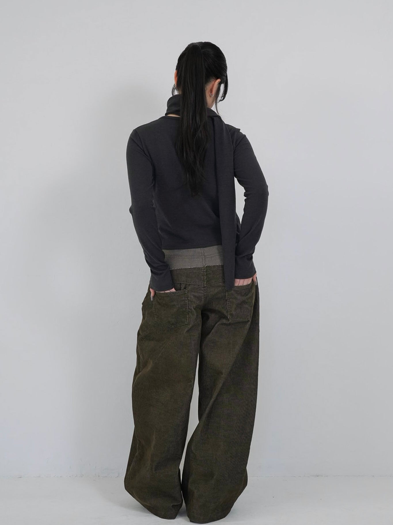 ウエスト切り替えが目を惹くコーデュロイパンツ。