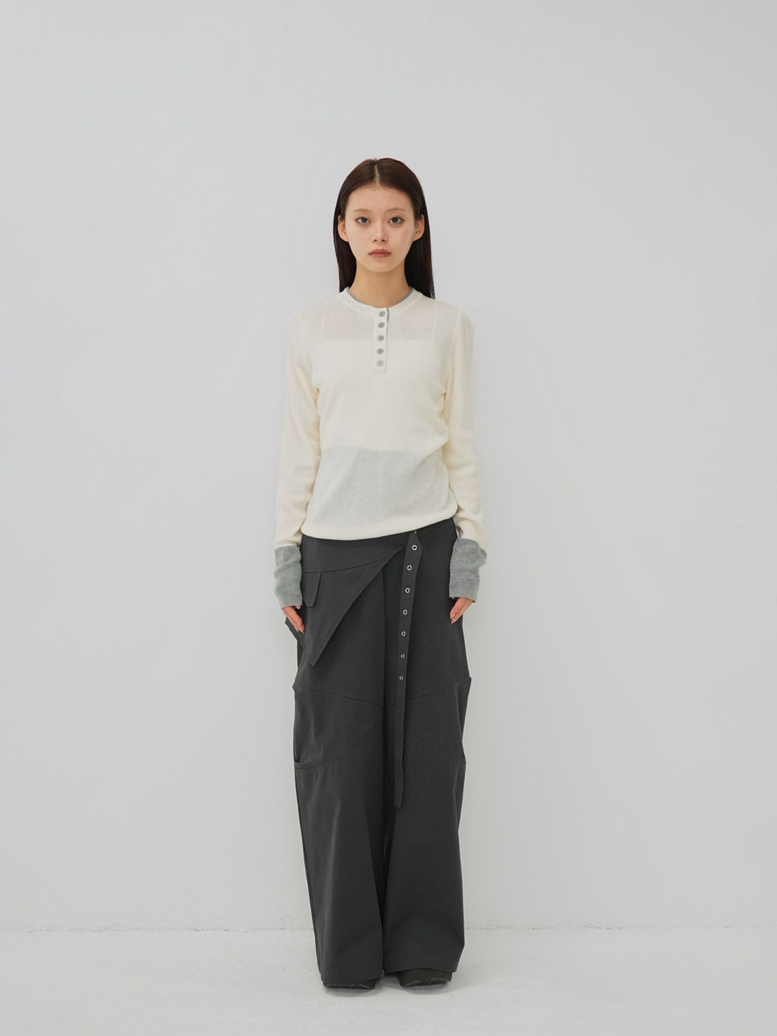 ラップディテールが目を惹く、個性派クロップドパンツ。
